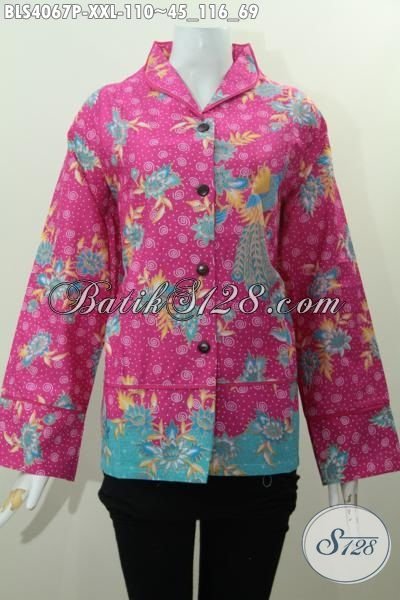 Pakaian Blus Jumbo Warna Pink Trendy Motif Terbaru Berpadu Model Yang Cewek Banget, Busana Batik Printing Solo Kwalitas Bagus Harga Sangat Terjangkau [BLS4067P-XXL]