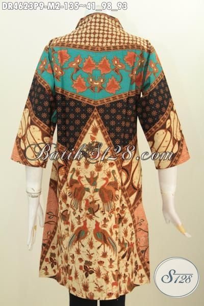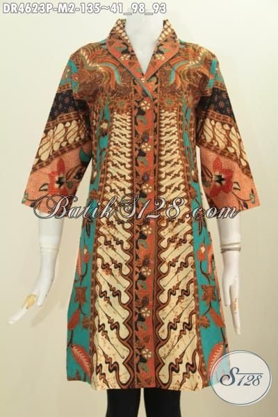 Pakaian Dress Batik Modis Khas Jawa Tengah, Baju Batik Elegan Motif Sinaran Kwalitas Bagus Proses Printing Hanya 135K [DR4623P-M]