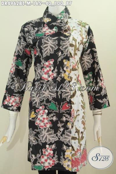 Pakaian Dress Model Terkini Dengan Kerah Miring, Baju Batik Wanita Kantoran Bahan Istimewa Proses Kombinasi Tulis Harga 165K [DR4962BT-M]