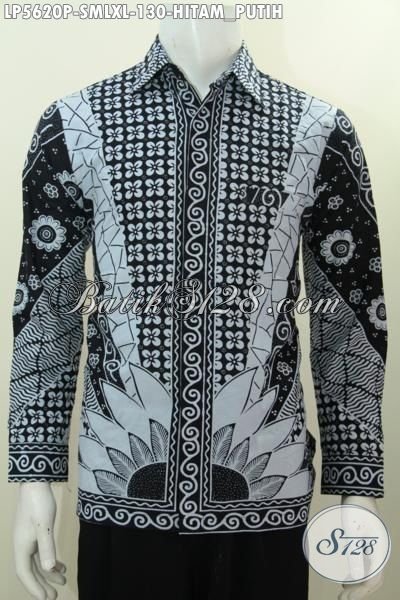 Pakaian Hem Batik Halus Lengan Panjang Istimewa Warna Hitam Putih, Busana Batik Halus Elegan Proses Printing Bisa Untuk Kerja Dan Acara Formal [LP5620P-S , M , L , XL]