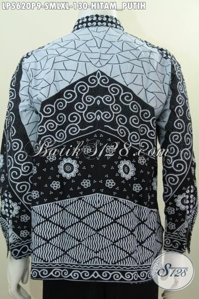 Pakaian Hem Batik Halus Lengan Panjang Istimewa Warna Hitam Putih, Busana Batik Halus Elegan Proses Printing Bisa Untuk Kerja Dan Acara Formal [LP5620P-S]