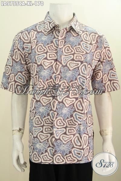 Pakaian Hem Batik Modis Istimewa Berbahan Halus Ukuran XL, Batik Baju Kerja Warna Kalem Motif Unik Proses Cap Warna Alam Spesial Buat Lelaki Dewasa [LD5755CA-XL]