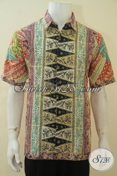 Pakaian Kemeja Batik Lengan Pendek Cap Tulis, Busana Batik Modis Motif Gaul Membuat Cowok Tampil Lebih Beda [LD4498CT-L]