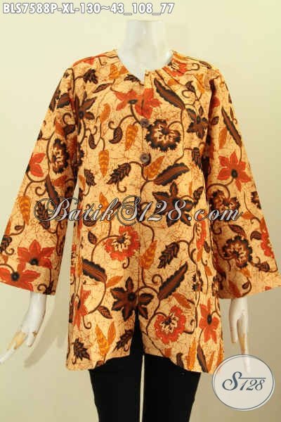 Pakaian Kerja Bahan Batik Wanita Dewasa, Blus Tanpa Krah Desain Trendy Motif Bagus Proses Printing Hanya 130K [BLS7588P-XL]