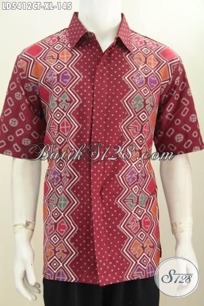 Pakaian Kerja Merah Bagus Desain Motif Mewah Untuk Kerja Dan Pesta, Hem Batik Lengan Pendek Trendy Proses Cap Tulis Buatan Solo Harga Lebih Terjangkau [LD5412CT-L]