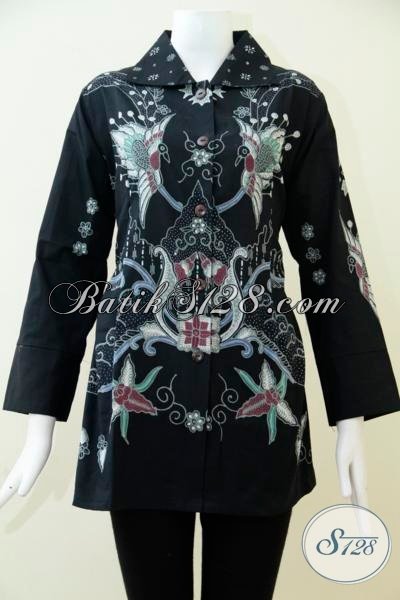 Pakaian Kerja Wanita Karir Tampil Beda, Baju Blus Batik Hitam Bahan Kwalitas Bagus Harga Terjangkau [BLS1574T-XL]