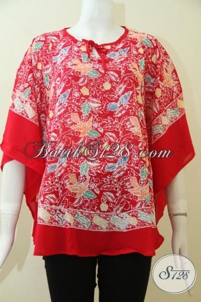 Pedagang Baju Batik Solo Online, Jual Blus Batik Kelelawar Motif Terbaru Berpadu Warna Merah Keren Yang Pas Buat Santai Dan Hangouts [BLS2474CR-All Size]