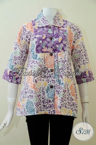 Pedagang Batik Online Terpercaya, Sedia Blus Batik Ungu Model Paling Baru Yang Paling Banya Di Cari Wanita Kantoran,Batik Solo Klasik Modern Tampil Rapi Dan Berkelas [BLS1932C-L]