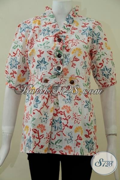 Penjual Batik Solo Online Terpercaya, Sedia Blus Batik Lengan Pendek Motif Unik Dan Trendy Dasar Putih Mewah Untuk Baju Kerja Tampil Lebih Rapi Dan Modis [BLS1877C-M]