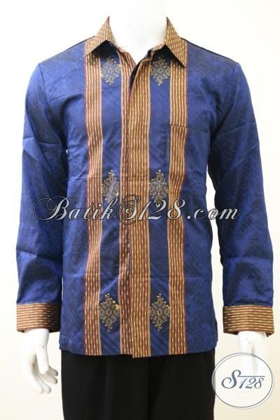Penjual Busana Tenun Online Terlengkap Dan Termurah, Sedia Baju Tenun Biru Garis Coklat Khas Pejabat, Kemeja Tenun Full Furing Model Lengan Panjang Sangat Cocok Untuk Rapat Dan Kondangan [LP3205NF-L]