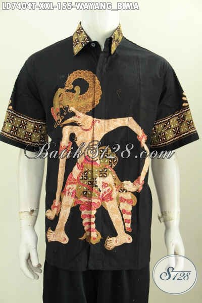 Produk Baju Batik Elegan Dasar Hitam Lengan Pendek Motif Wayang Bima, Hem Batik 3L Bahan Halus Proses Tulis Untuk Lelaki Gemuk Terlihat Gagah [LD7404T-XXL]