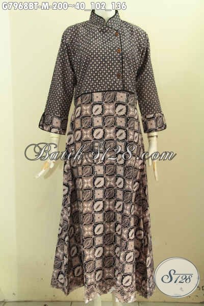Produk Baju Batik Kombinasi, Long Dress Batik Klasik Kombinasi Tulis Bahan Adem, Pakaian Batik Berkelas Wanita Berhijab [G7968BT-M]