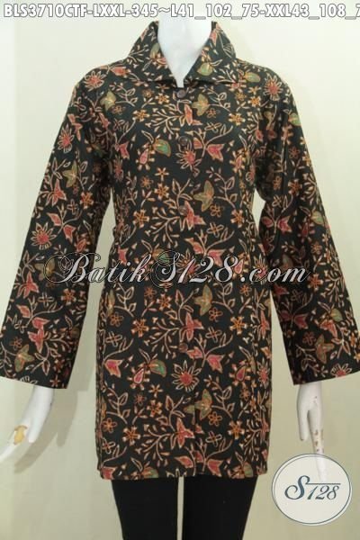 Produk Baju Batik Perempuan Terkini, Busana Batik Jawa Modis Motif Bunga Cap Tulis, Blus Batik Berkelas Daleman Full Furing Kesukaan Wanita Karir [BLS3710CTF-L , XXL]