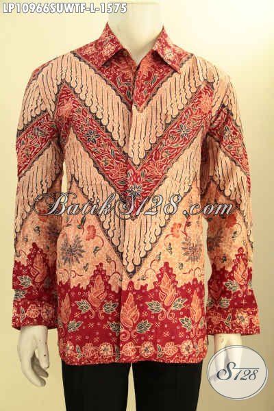 Produk Baju Batik Premium Untuk Pria Model Lengan Panjang Bahan Sutra, Busana Batik Tulis Asli Full Furing, Menunjang Penampilan Lebih Elegan Sempurna [LP10966SUWTF-L]