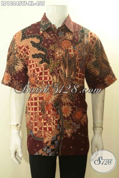 Produk Baju Batik Pria Dewasa Motif Mewah Bahan Halus Lengan Pendek Proses Tulis, Kemeja Batik Kerja Berkelas Daleman Full Furing Hanya 455K [LD10845TF-XL]