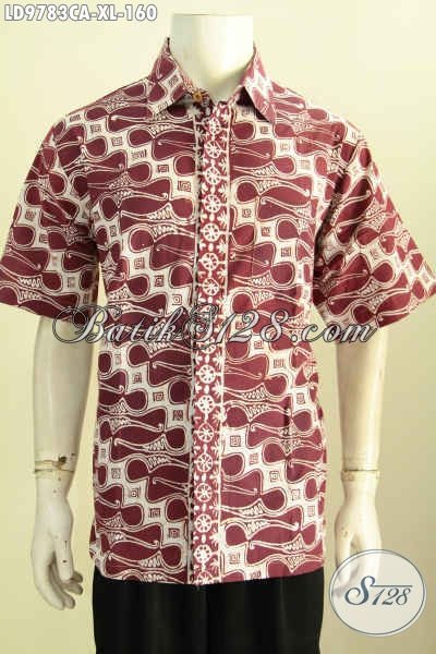 Produk Baju Batik Pria Terbaru, Hadir Dengan Motif Elegan Klasik Berpadu Warna Merah Keren Proses Cap Warna Alam, Penampilan Makin Menawan [LD9783CA-XL]