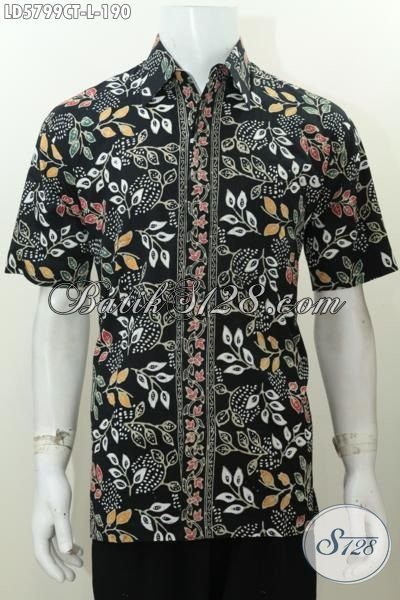 Produk Baju Batik Pria Terbaru Yang Lebih Modern Dan Keren, Hem Batik Cap Tulis Dasar Hitam Model Lengan Pendek Motif Bunga Cap Tulis Di Jual Online Harga Grosir [LD5799CT-L]