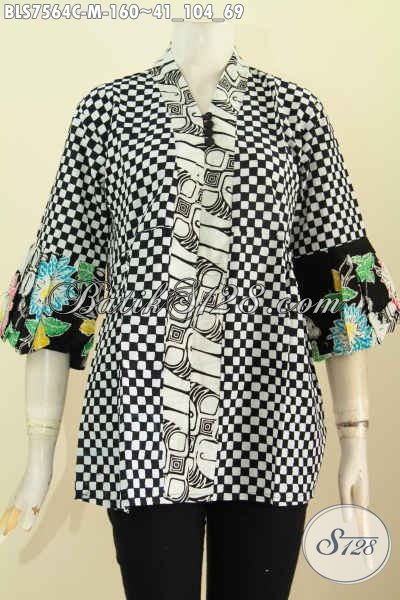 Produk Baju Batik Solo, Busana Batik Jawa Keren Kwalitas Istimewa, Blus Kenzi Modis Kancing Banyak Harga 160K Proses Cap [BLS7564C-M]