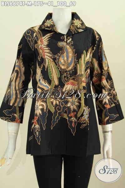 Produk Baju Batik Solo Kwalitas Halus Dasar Hitam Motif Unik Model Lengan 7/8 Pake Kerah Kotak Proses Tulis, Pas Buat Kerja [BLS6674T-M]