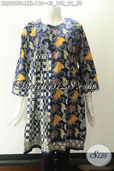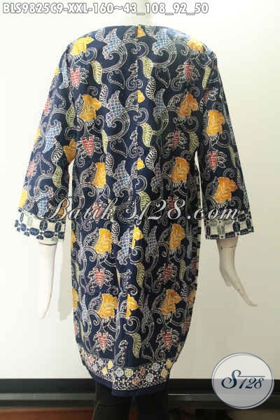 Produk Baju Batik Solo Kwalitas Istimewa Spesial Buat Wanita Gemuk, Blouse Lengan 7/8 Motif Trendy Kekinian Model Tanpa Kerah Pakai Resleting Jepang Di Belakang Hanya 100 Ribuan Saja [BLS9825C-XXL]