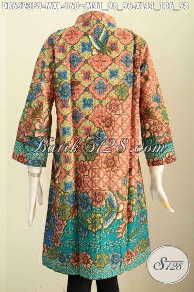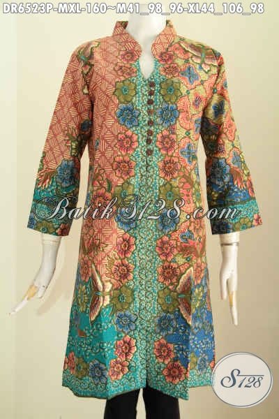 Produk Baju Batik Solo Nan Istimewa, Busana Batik Masa Kini Proses Printing Berbahan Adem Model Kancing Banyak Pake Saku Depan Tampil Lebih Trendy [DR6523P-M , XL]