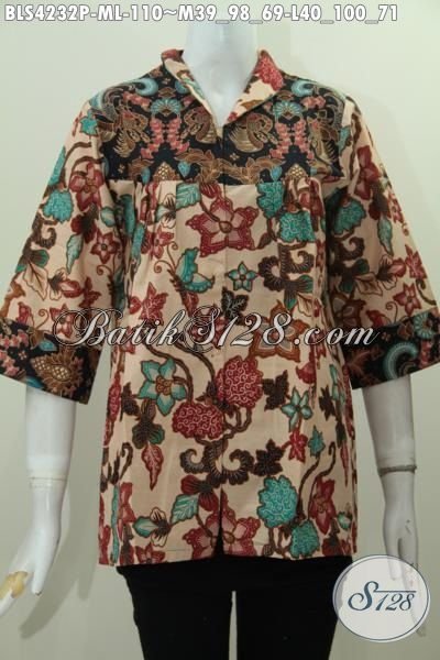 Produk Baju Batik Terbaru Buat Wanita Muda Dan Dewasa, Baju Blus Kerah Langsung Bahan Batik Printing Modis Untuk Kerja Dan Pesta [BLS4232P-M , L]