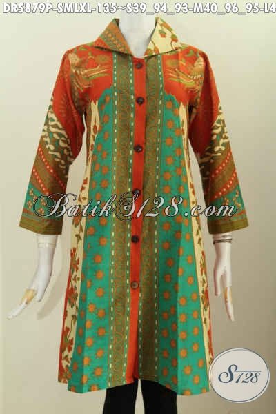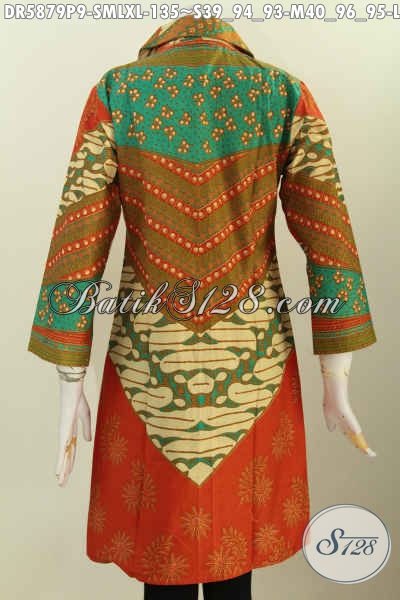Produk Baju Batik Terkini, Dress Batik Kerah Kotak Motif Sinaran Proses Printing Untuk Tampil Gaya Dan Berkelas [DR5879P-S , M , L , XL]