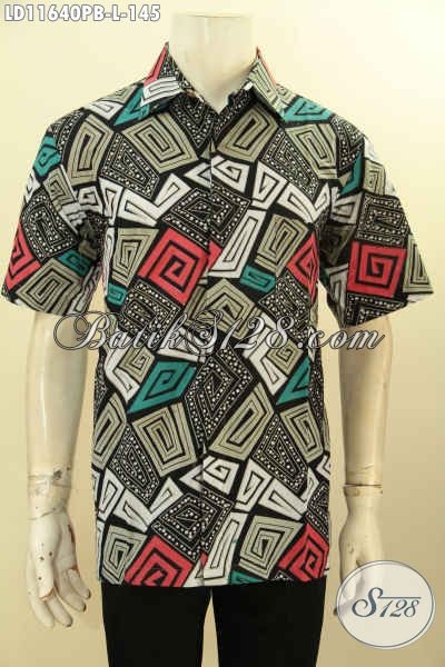 Produk Baju Batik Trendy Pria Model Lengan Pendek, Hem Batik Motif Unik Dengan Kombinasi Warna Keren Desain Bagus Proses Printing Cabut, Cocok Banget Buat Hangout Dan Pesta [LD11640PB-L]