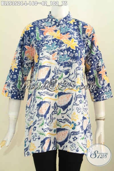 Produk Baju Batik Untuk Wanita Karir, Busana Blus Batik Kerah Shanghai Motif Terkini Proses Cap Di Jual Online 160 Ribu [BLS5352C-L]