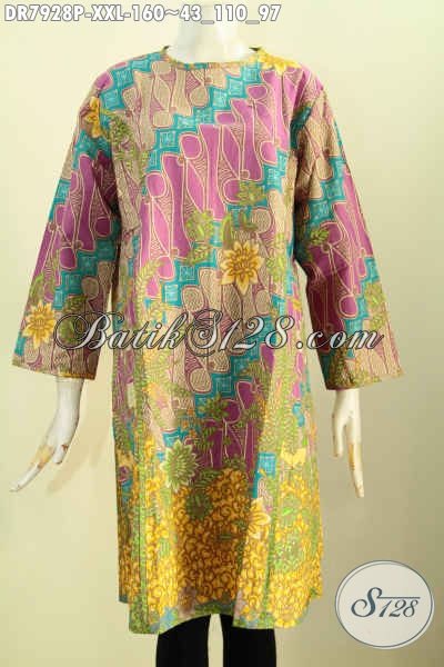 Produk Baju Batik Wanita Gemuk Terbaru, Busana Batik Jawa Tengah Model Tanpa Krah Resleting Depan Bikin Penampilan Lebih Gaya Dan Keren [DR7928P-XXL]