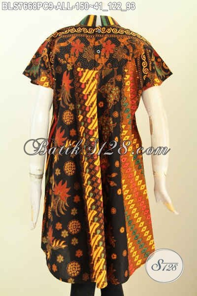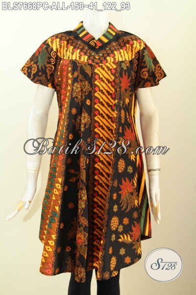 Produk Baju Batik Wanita Terkini, Blus Terusan Lengan Pendek Kerah Shanghai 2017, Berbahan Halus Proses Printing, Cocok Untuk Acara Resmi [BLS7668PC-All Size]