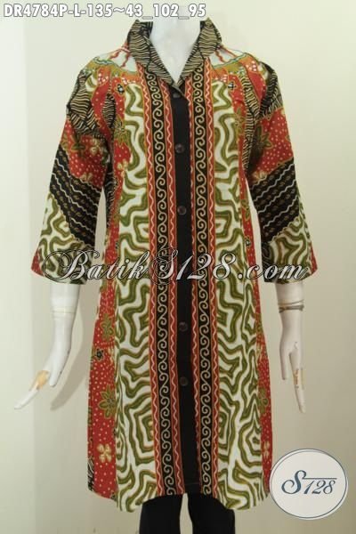 Produk Baju Batik Wanita Terkini Dari Solo, Hadir Dengan Model Kerah Langsung Motif Klasik Sinaran Nan Elegan Proses Printing Harga 135K [DR4784P-L]