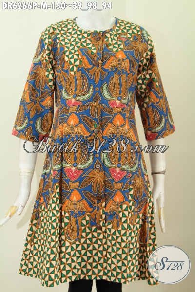 Produk Baju Batik Wanita Terkini, Dress Batik Tanpa Krah Buatan Solo Proses Printing Di Jual Online 100 Ribuan [DR6266P-M]