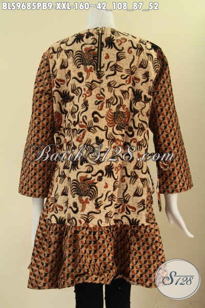 Produk Baju Batik Wanita Tren Mode Masa Kini, Atasan Batik Trendy Lengan 7/8 Tanpa Krah Bahan Halus Nyaman Di Pakai, Baju Batik 2 Motif Di Lengkapi Resleting Belakang [BLS9685PB-XXL]