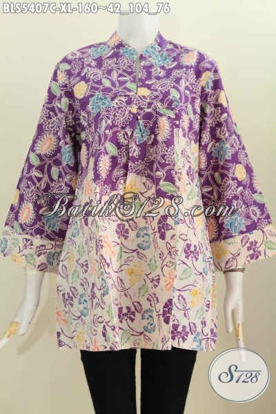 Produk Baju Batik Warna Ungu, Blus Batik Kerah Shanghai Motif Trend 2016 Proses Cap Yang Bikin Penampilan Lebih Istimewa Dan Berkelas [BLS5407C-XL]