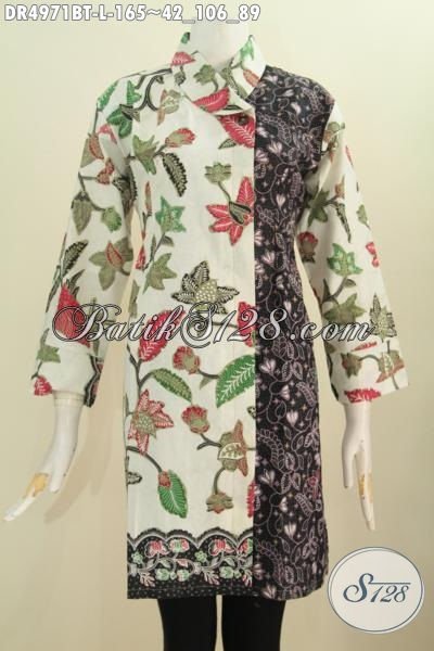 Produk Baju Dress Batik Istimewa Buatan Solo Indonesia, Berbahan Halus Model Kerah Miring Nan Istimewa Proses Kombinasi Tulis Harga 160 Ribuan [DR4971BT-L]