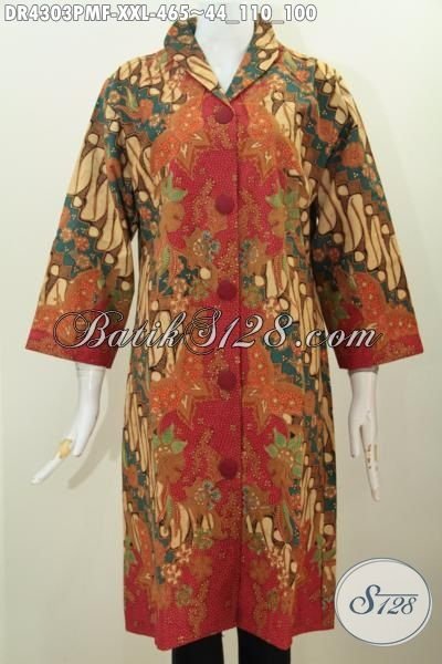 Produk Baju Dress Batik Premium Buatan Solo Motif Klasik Kombinasi Tulis, Pakaian Batik Kerah Langsung Daleman Furing Tricot Lebih Mewah Dan Berkelas Hanya 400 Ribuan [DR4303PMF-XXL]