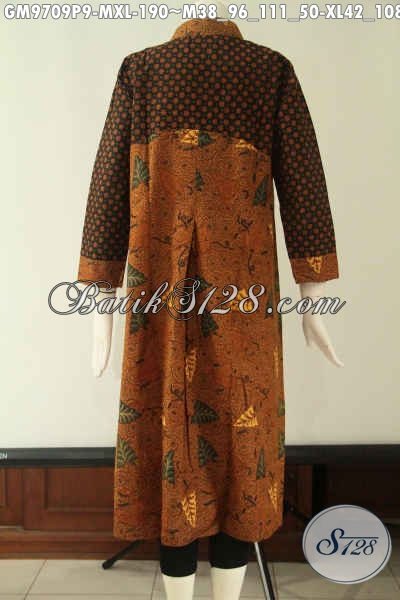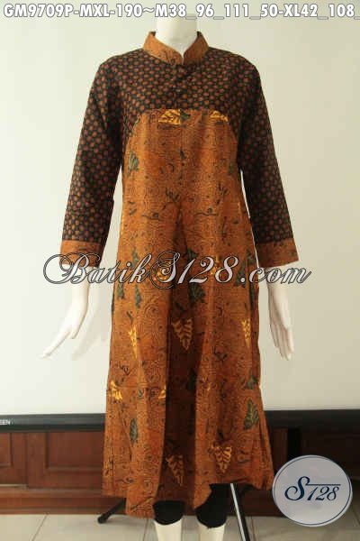 Produk Baju Gamis Wanita Dual Motif Klasik Model Lengan Panjang Krah Shanghai, Abaya Batik Modern Pakai Kancing Bathok Sampai Dada Pas Banget Untuk Acara Resmi Dan Berkelas [GM9709P-M]