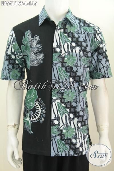 Produk Baju Hem Batik Parang Keren Kombinasi Kain Polos, Jual Baju Batik Cap Tulis Lengan Pendek Size L Untuk Pria Muda Dan Dewasa Tampil Lebih Bergaya [LD5411CT-L]