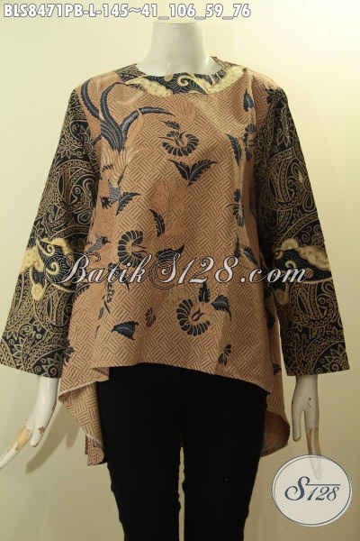 Produk Batik Blouses Wanita Untuk Tampil Beda Dan Bergaya, Busana Batik Elegan Model Bagian Depan Lebih Pendek Dari Belakang Di Lengkapi Kancing Belakang Dan Lengan Tumpuk Kwalitas Istimewa [BLS8471PB-L]