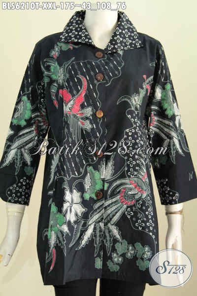 Produk Batik Blus 3L Elegan Dasar Hitam Motif Bagus Proses Tulis, Istimewa Buat Acara Resmi [BLS6210T-XXL]