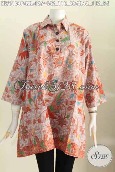 Produk Batik Blus Keren Khas Jawa Tengah, Pakaian Batik Halus Kerah Kemeja Model A Bahan Adem Kwalitas Istimewa [BLS6104P-L , XL]