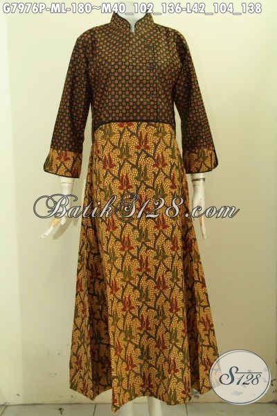 Produk Batik Gamis Solo Krah Shanghai, Baju Batik Gamis Plisir Polos Resleting Belakang Kancing Depan, Bikin Penampilan Berkelas [G7976BT-M , L]