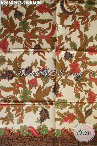 Produk Batik Kain Elegan, Batik Print Lasem Kwalitas Lebih Halus Dengan Warna Mewah Berpadu Motif Daun, Pas Untuk Busana Kerja Harga 90 Ribu Saja [K2660PL-240x110cm]