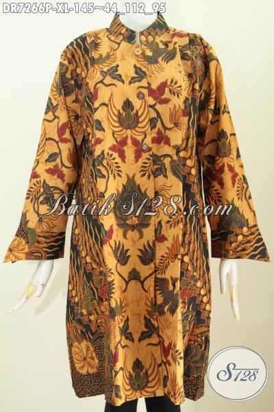 Produk Batik Spesial Untuk Wanita Dewasa, Pakaian Batik Klasik Desain Modern Kerah Shanghai Kombinasi 2 Warna Untuk Penampilan Mempesona [DR7266P-XL]