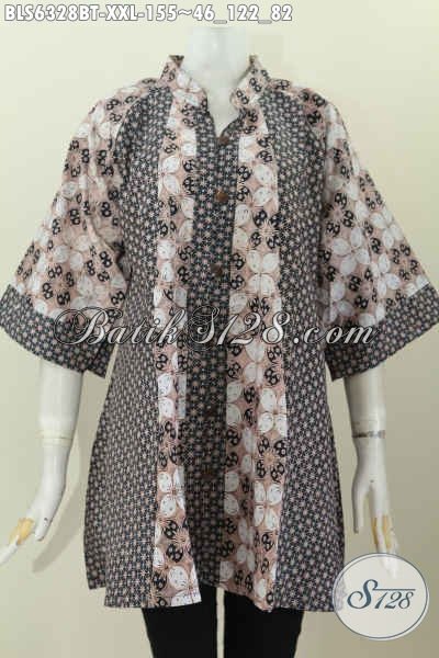 Produk Busana Batik Istimewa Buatan Solo, Pakaian Batik Elegan Untuk Wanita Gemuk Kombinasi Dua Motif Klasik Proses Kombinasi Tulis Pakai Kerah Shanghai [BLS6328BT-XXL]
