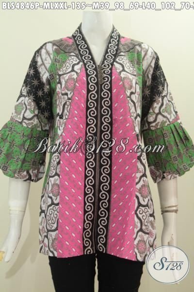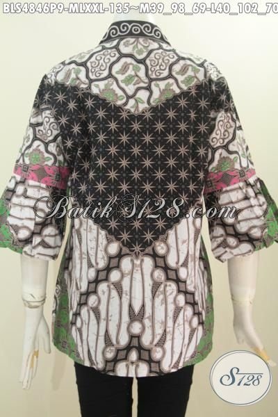Produk Busana Batik Istimewa Dari Solo, Pakaian Batik Klasik Motif Sinaran Bahan Adem Proses Printing Model Kerah Kartini Kancing Depan Pas Buat Seragam Kerja [BLS4846P-XXL]