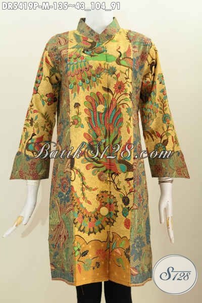 Produk Busana Batik Perempuan Muda Yang Selalu Ingin Tampil Gaya, Pakaian Batik Dress Kancing Besar Motif Bagus Proses Printing 130 Ribuan Asli Solo [DR5419P-M]