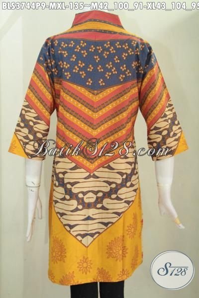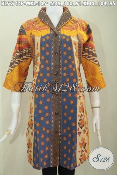 Produk Busana Batik Printing Buat Wanita, Baju Blus Batik Warna Trendy Motif Klasik Kwalitas Bahan Halus Nyaman Di Pakai [BLS3744P-M , XL]