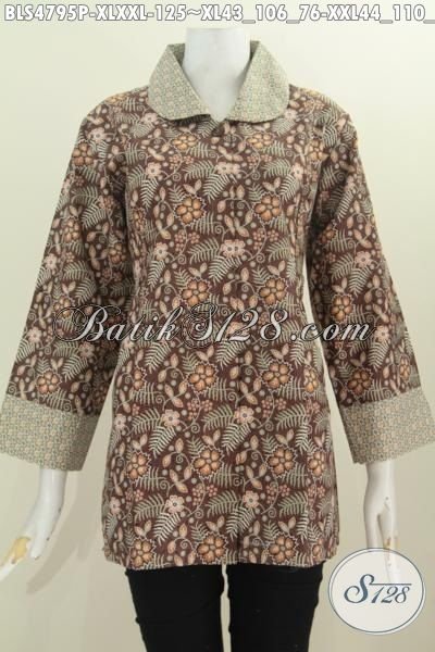 Produk Busana Batik Terbaru Spesial Untuk Wanita Dewasa Karir Aktif, Pakaian Batik Blus Kerah Bula Tanpa Furing Motif Berkelas Proses Printing Untuk Penampilan LebihMewah Dan Menawan [BLS4795P-XL]